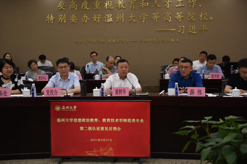 专家组领导、校长赵敏、副校长薛伟,学校相关职能部门负责人,教育学院相关领导和教师出席了温州大学教育技术学师范类专业第二级认证专家见面会。