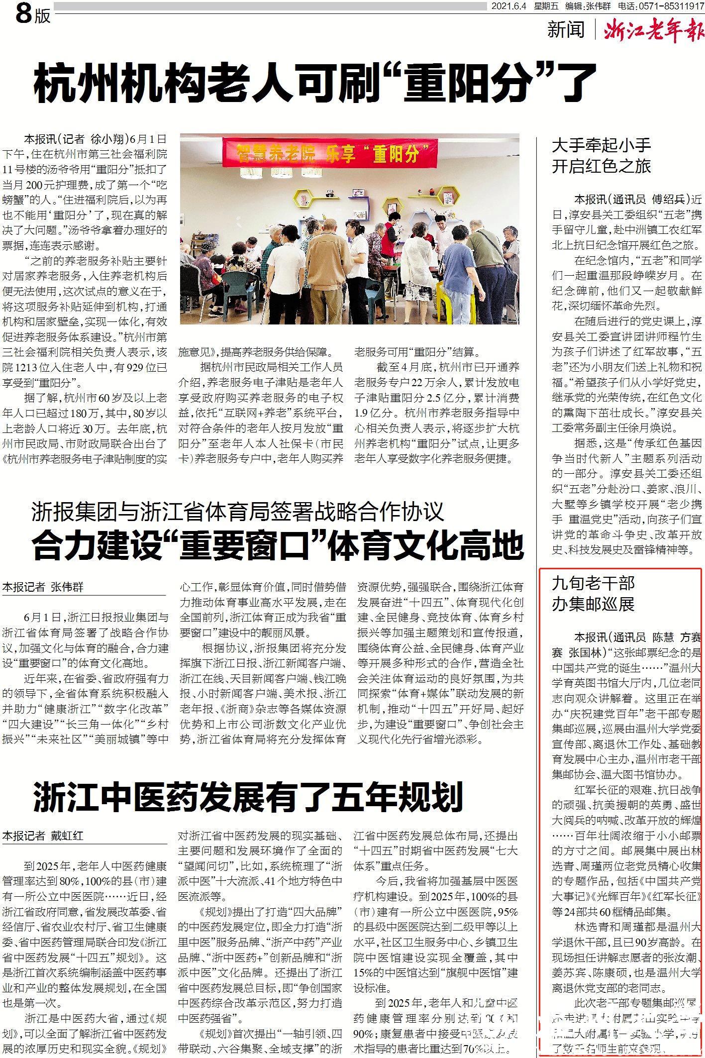 林选青和周瑾都是温州大学退休干部,且已90岁高龄。在现场担任讲解志愿者的张汝潮、姜苏宾、陈康硕,也是温州大学离退休党支部的老同志。