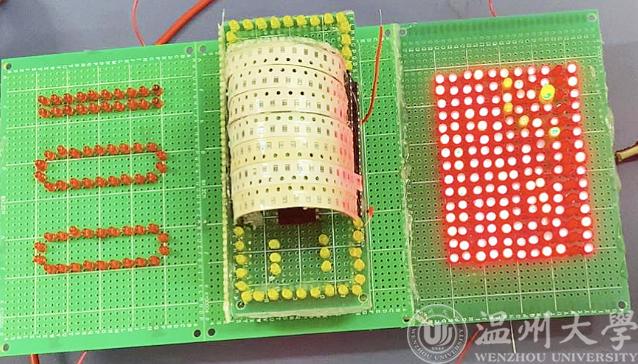 发光二极管,闪动的党徽、党徽、红船、100周年、2021-2021等图文,通过单片机呈现出跃动的符号,发出悦耳的音乐……。2021年6月5日,周六,温州大学电气与电子工程学院工程实验室内,热闹非凡,一场“党味”十足的特色电路焊接大赛作品成果展示正在举行。