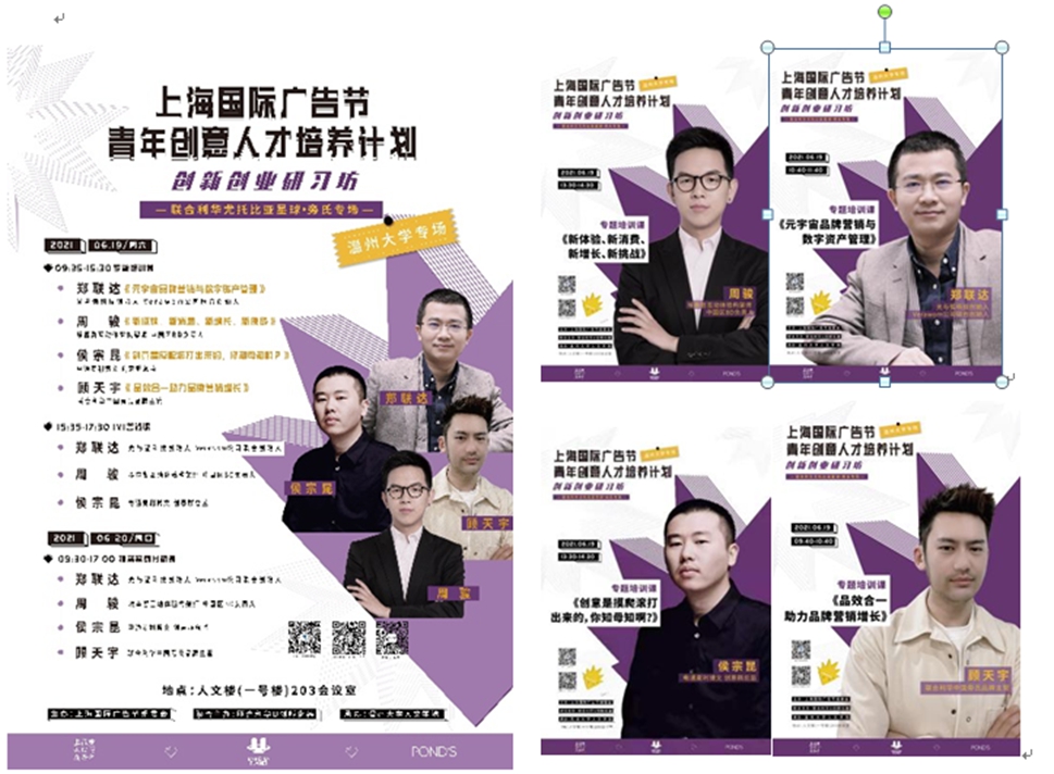 6月19-20日,一场来自大上海的广告创意头脑风暴席卷温州大学人文学院。上海国际广告节将其拳头公益品牌活动——青年创意人才培养计划创新创业研习坊搬进温大,来自上海国际广告节战略合作方——联合利华旁氏品牌、电通麦利博文、埃森哲互动与光弧科技的业界精英们,为温大广告学子带来了一场创新创意创业的饕餮盛宴!