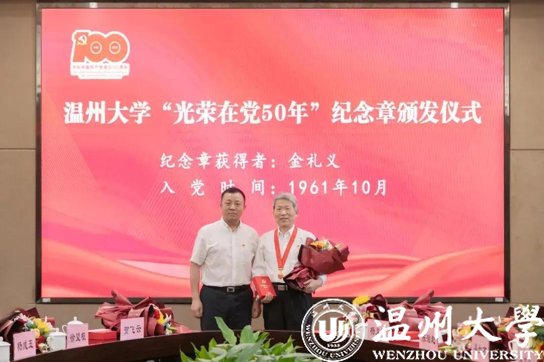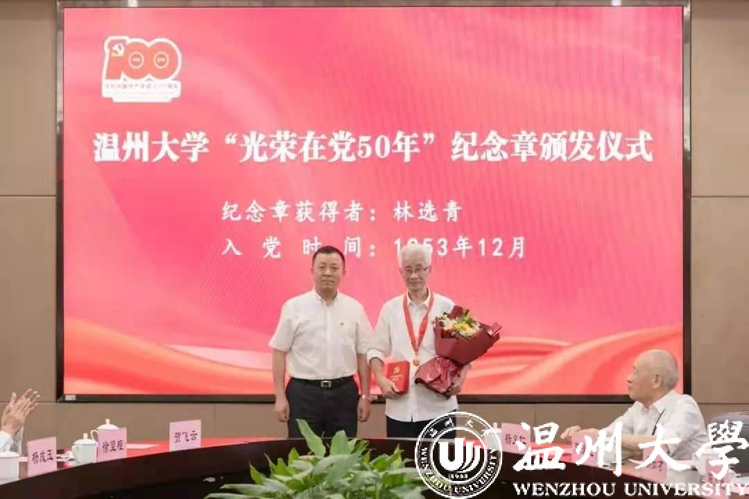 温州大学共有52名老党员获颁“光荣在党50年”纪念章,其中有25名老党员出席纪念章现场颁发仪式,其他老党员将由组织派人上门颁发。