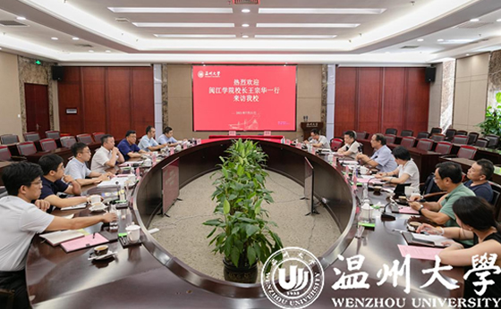 7月21日,闽江学院王宗华校长一行来温州大学考察交流,并就两校深化交流合作事宜进行洽谈。校党委书记谢树华、副校长薛伟出席会议,相关部门、学院负责人参加。