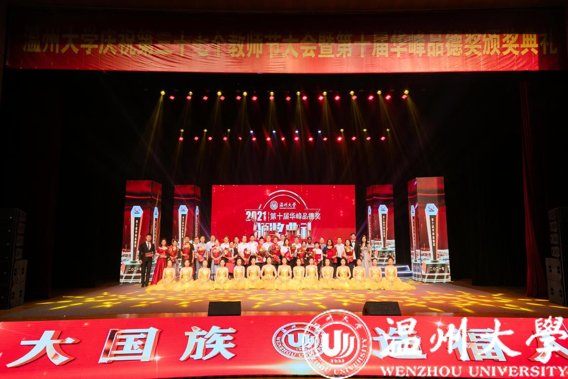 9月10日,温州大学教师节庆祝大会暨第十届“华峰品德奖”颁奖典礼举行,20位从教30年教师获得表彰,10位最具代表性的道德模范个人或集体获颁2021华峰品德奖,获万元奖金。