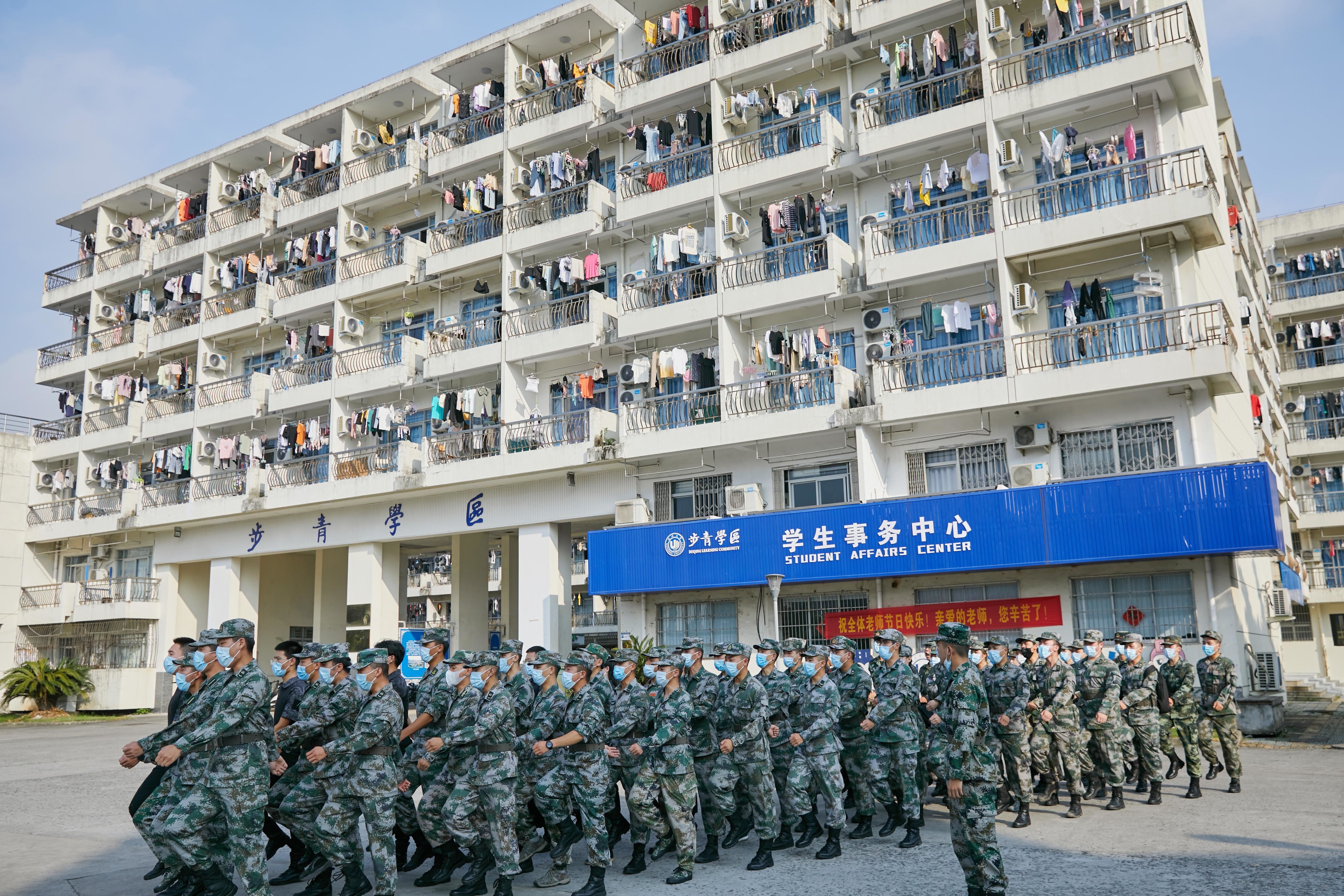 “稍息,立正!齐步走!”整齐的步伐,嘹亮的口号,新学期伊始,温州大学本科新生进入军训模式。为了防疫需要,此次担任军训教官的并不是现役官兵,而是55名退役复学大学生。他们身着军装,标准的指令和动作,仿佛还在军营。