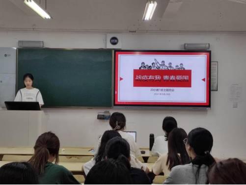 “新时代中国青年是奋斗进取的青年,是堪当大任的青年。习近平总书记曾在给北京大学援鄂医疗队全体“90后”党员回信中,这样写道:“广大青年不惧风雨、勇挑重担,让青春在党和人民最需要的地方绽放绚丽之花”。在抗“疫”情与爱国心越来越紧密相连的社会背景下,温州大学教育学院开展了“战疫有我,青春爱国”国庆安全教育主题班会。