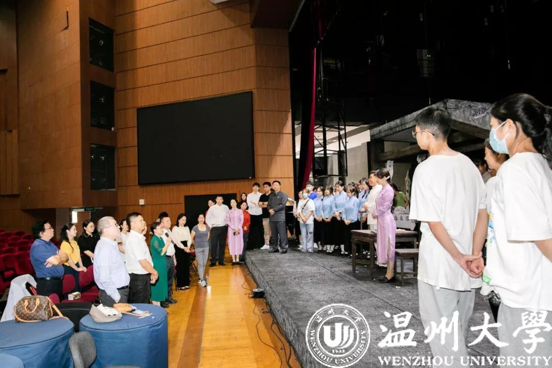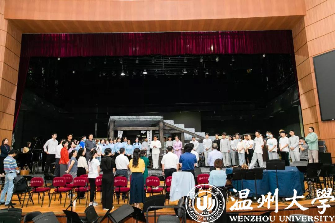《五星红旗》是国内首部以国旗为题材的歌剧,是一部被业内认为“极有挑战性”的歌剧。随着展演日期临近,连日来,温州大学音乐学院参演师生驻扎育英大礼堂,紧锣密鼓地排练节目,导演王湖泉教授亲临排练现场,坐阵指挥,力求以最好的状态展现温大风采。主演、群演、乐队通力合作,一遍又一遍地排练,揣摩人物心理和唱词动作调度。据了解,此次参加中国歌剧节时间紧、任务重,为了剧目更完美的呈现,剧组演职人员都在进行高强度的排练,哪怕是国庆假期,大家也都坚守在自己的工作岗位上为歌剧节全力以赴。大四的蓝展仪同学已是第三次参演《五星红旗》,“虽然正处于考编的关键时期,但收到通知后,我和室友毫不犹豫的就来了。这是一次非常难得的机会,演好《五星红旗》,弘扬国旗文化,不仅是我们的光荣更是使命。”蓝展仪说道。