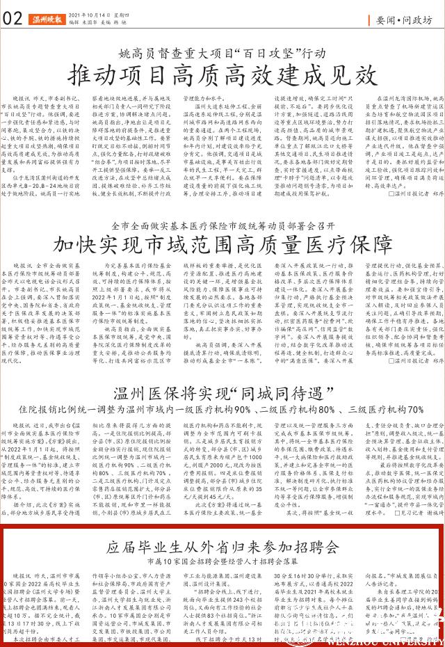 昨天,温州市市属10 家国企 2022 届高校毕业生校园招聘会(温州大学专场)暨经营人才招聘会落幕。前一天,线上招聘会也圆满结束,观看人次超10 万。据不完全统计,截至 13 日 17 时 30 分,线上下收到简历超千份。