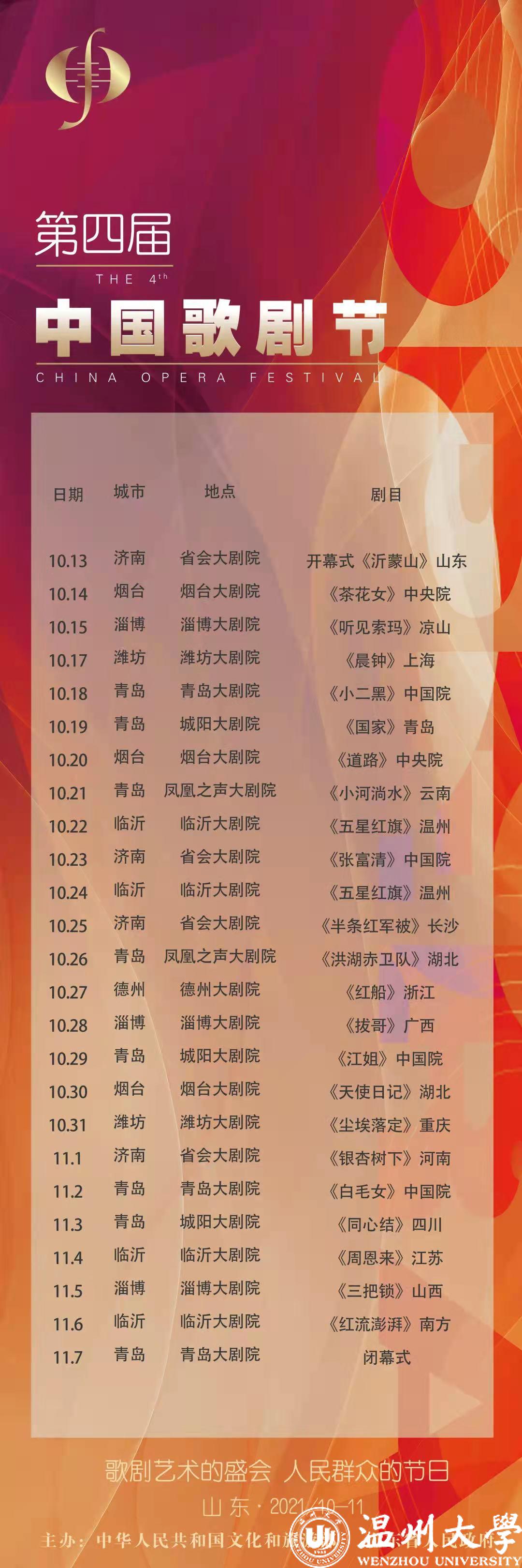 中国歌剧节是我国歌剧领域的国家级艺术盛会,每三年一届。第四届中国歌剧节移师山东,于10月13日在济南开幕。歌剧节期间,全国18部新创剧目、6部经典剧目入围展演名单,原创歌剧《五星红旗》位列其中。