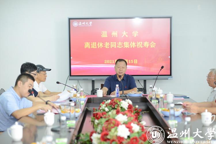 10月15日,温州大学在学院路校区老干部活动中心,为全校今年逢七十、八十、九十岁、一百岁的42位离退休老同志举办集体祝寿会。校党委副书记吴金法,党校办、离退休教职工协会、离退休工作处等部门和团体负责人参加祝寿会。