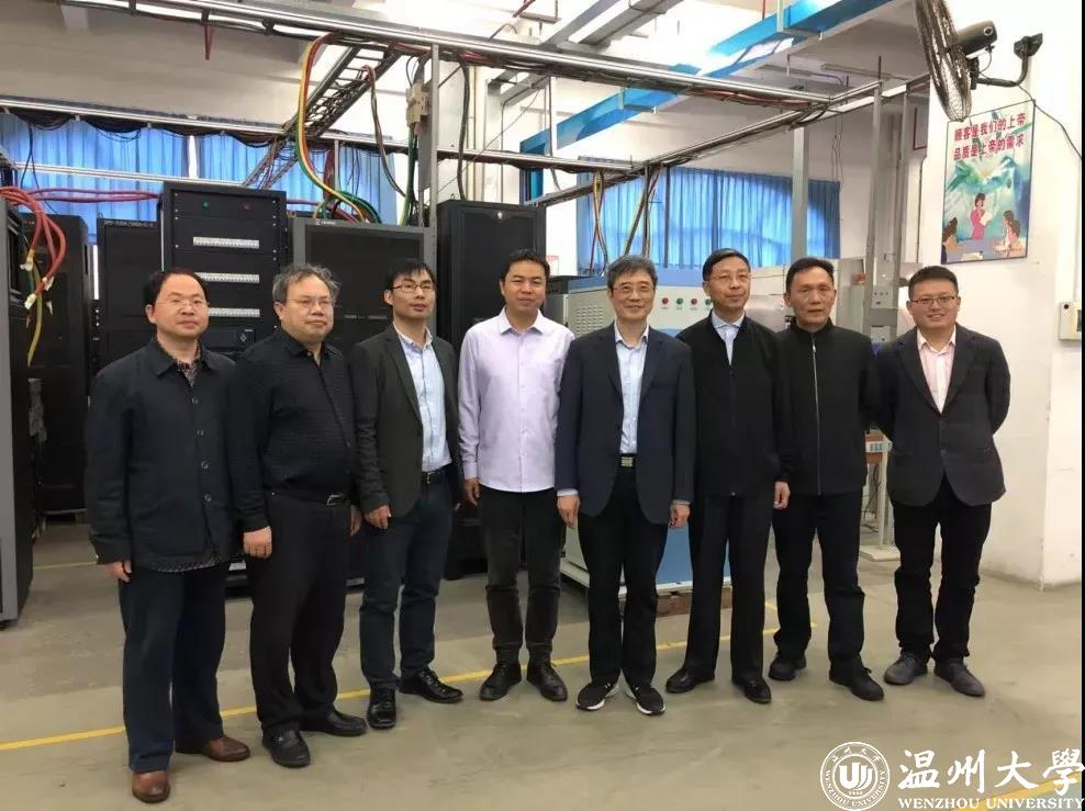 “海岛/岸基高过载大功率电源系统关键技术与装备及应用”项目团队。戴瑜兴教授(右三)、罗安院士(右四)、陈燕东教授(右五)。图片来源:温州大学