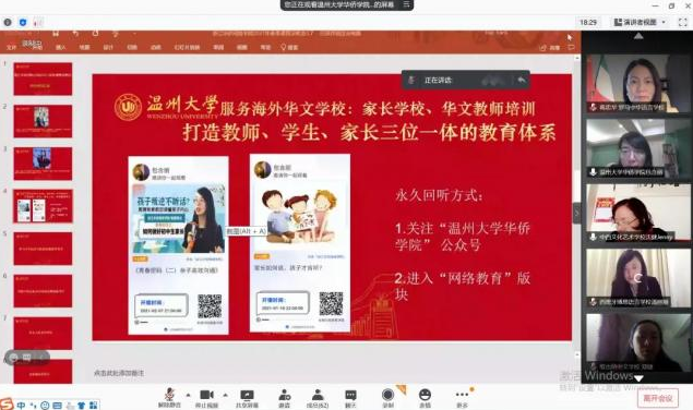 项灵捷校长表示,《趣味华文教育系列课程》为海外侨胞量身定制,深受学员们的喜爱。其团队成员叶力、林锦芝、周培基老师分别对《温州童谣》《中华德育故事》《走进传统节日》的课程内容作了详细介绍。