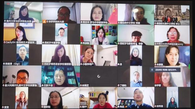 北京时间2021年3月7日晚9点,浙江华侨网络学院召开2021年春季课程线上说明会,温州大学华侨学院、温州大学城附属学校教育集团总校长陈加仓、副校长项灵捷,意大利、西班牙、巴西、德国、美国、葡萄牙、瑞士、英国10个国家海外华校校长代表及家长代表等总计63位参加会议。