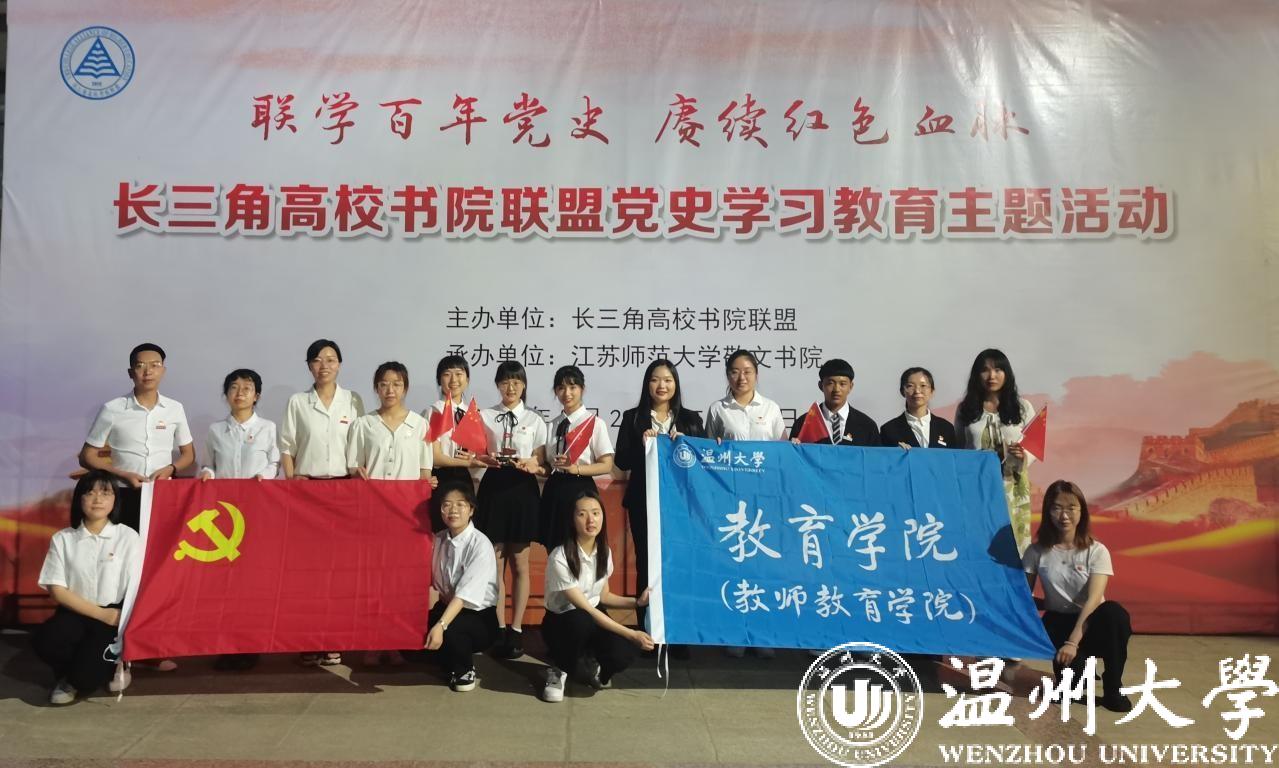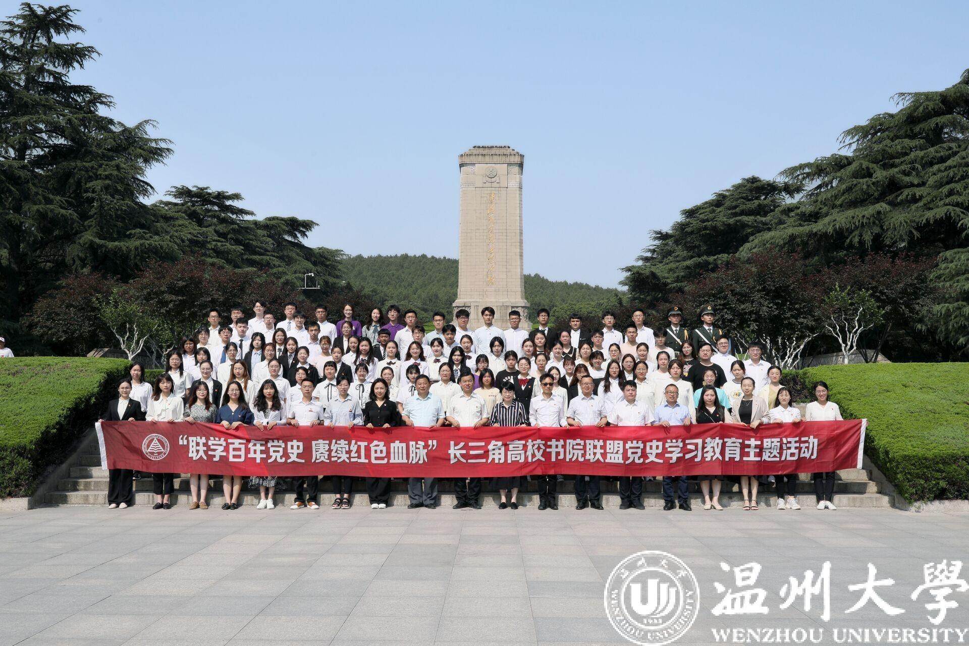 为庆祝中国共产党成立100周年,构建党史学习教育创新平台,协同推进党史学习教育深入开展,充分挖掘红色资源,学习百年党史,赓续共产党人的精神血脉。2021年5月29日至30日,温州大学溯初书院师生党员赴江苏师范大学参加“联学百年党史,赓续红色血脉”——长三角高校书院联盟党史学习教育。本次活动由江苏师范大学敬文书院承办,长三角高校书院联盟10所高校共同参与,江苏师范大学校长周汝光、长三角高校书院联盟理事长、华东师范大学孟宪承书院党委书记兼院长吴薇等出席了有关活动。
