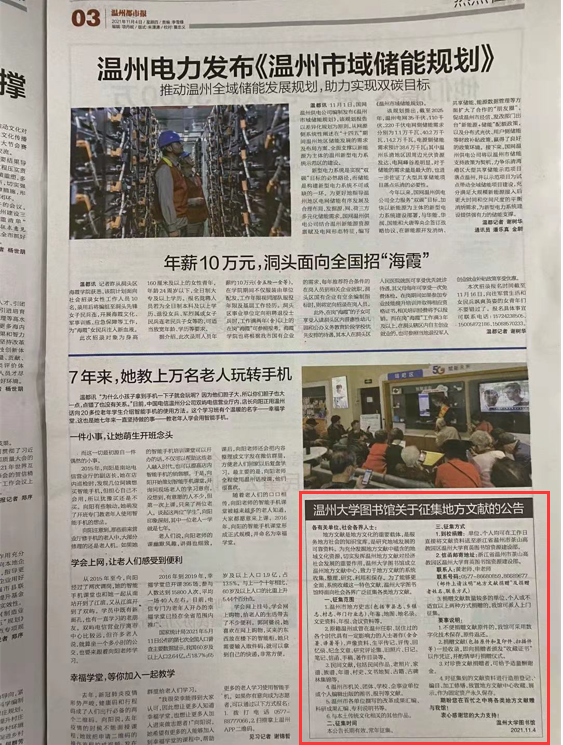4、温州市机关、团体、学校、企事业单位或个人编辑出版的图书、报刊等文献。