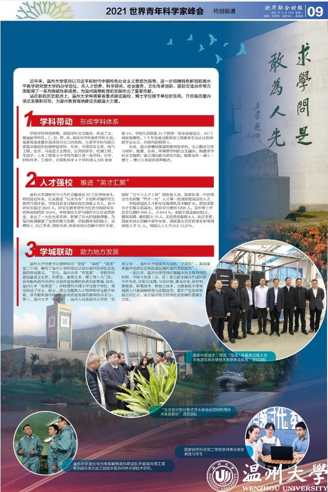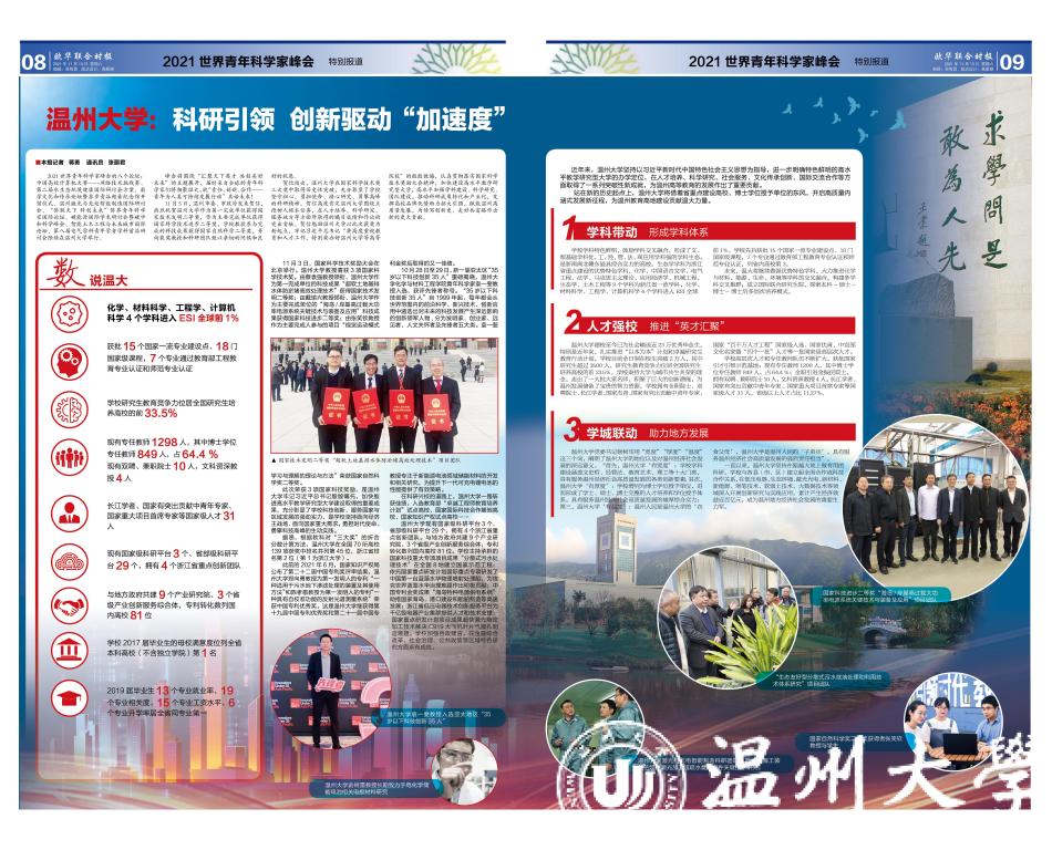 与此同时,欧华联合时报特推出《2021世界青年科学家峰会》特刊,紧紧围绕峰会主题,用整整16个版面,回顾前两届世界青年科学家峰会的成功举行,各项落地开花的成果,为温州发展激发源源不断的创新动力。更重要的是,聚焦本届活动的各项创新与亮点,讲好“办好一个会,赋能一座城”的创新故事。