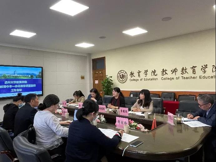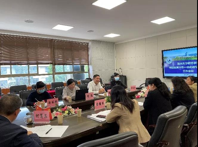 2021年11月3日,温州大学教育学院召开学前教育中本一体化教学质量监控工作会议。教育学院副院长林琛琛、党委副书记章园园、学前系副主任陈铿,温州市中等幼儿师范学校校长蒋高烈、副校长周岚、教务主任葛梦力及郑丽玲老师、学前教育科相关老师参加会议。
