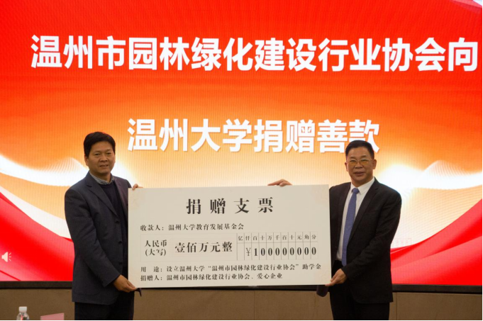 市园林绿化建设行业情系教育,用实际行动真心回报社会,设立“温州大学温州市园林绿化建设行业协会助学金”,捐赠100万元,分四年帮助温州大学家庭经济困难的在校全日制本科生完成学业。首批向50名受助学生颁发助学金,来自西藏那曲的藏族学生作为受助学生代表,感谢爱心企业对自己的无私帮助,表示将积极向上,成长为社会有用人才。