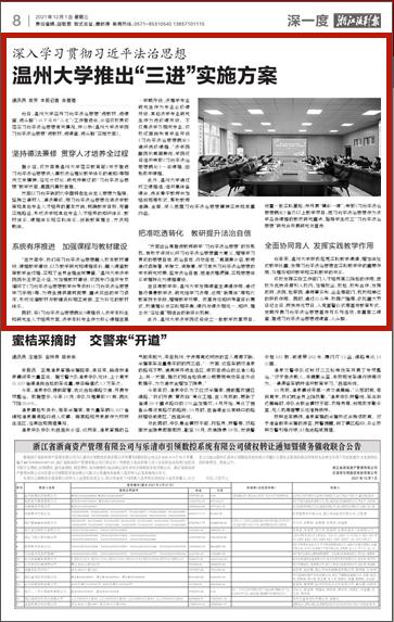 据介绍,该方案是温州大学落实教育部《关于推进习近平法治思想纳入高校法治理论教学体系的通知》等相关文件精神,经充分讨论、研究并制订的“习近平法治思想”教学方案,属国内高校首推。
