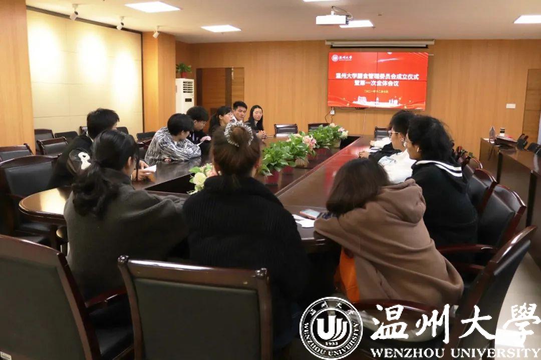 为提升学校餐饮服务质量,加强对学校餐饮的监管工作,保障师生用餐安全,推进食品安全各项工作有序开展。近日,温州大学膳食管理委员会成立仪式暨第一次全体会议在大学生活动中心B座409会议室顺利召开。会议宣读并通过了《温州大学膳食管理委员会章程》,部署了膳食管理委员会2022年的主要工作,同时向12名首届膳管会委员颁发了聘书。成立仪式由校团委副书记翁士洋主持,校团委副书记易招娣出席会议并讲话。