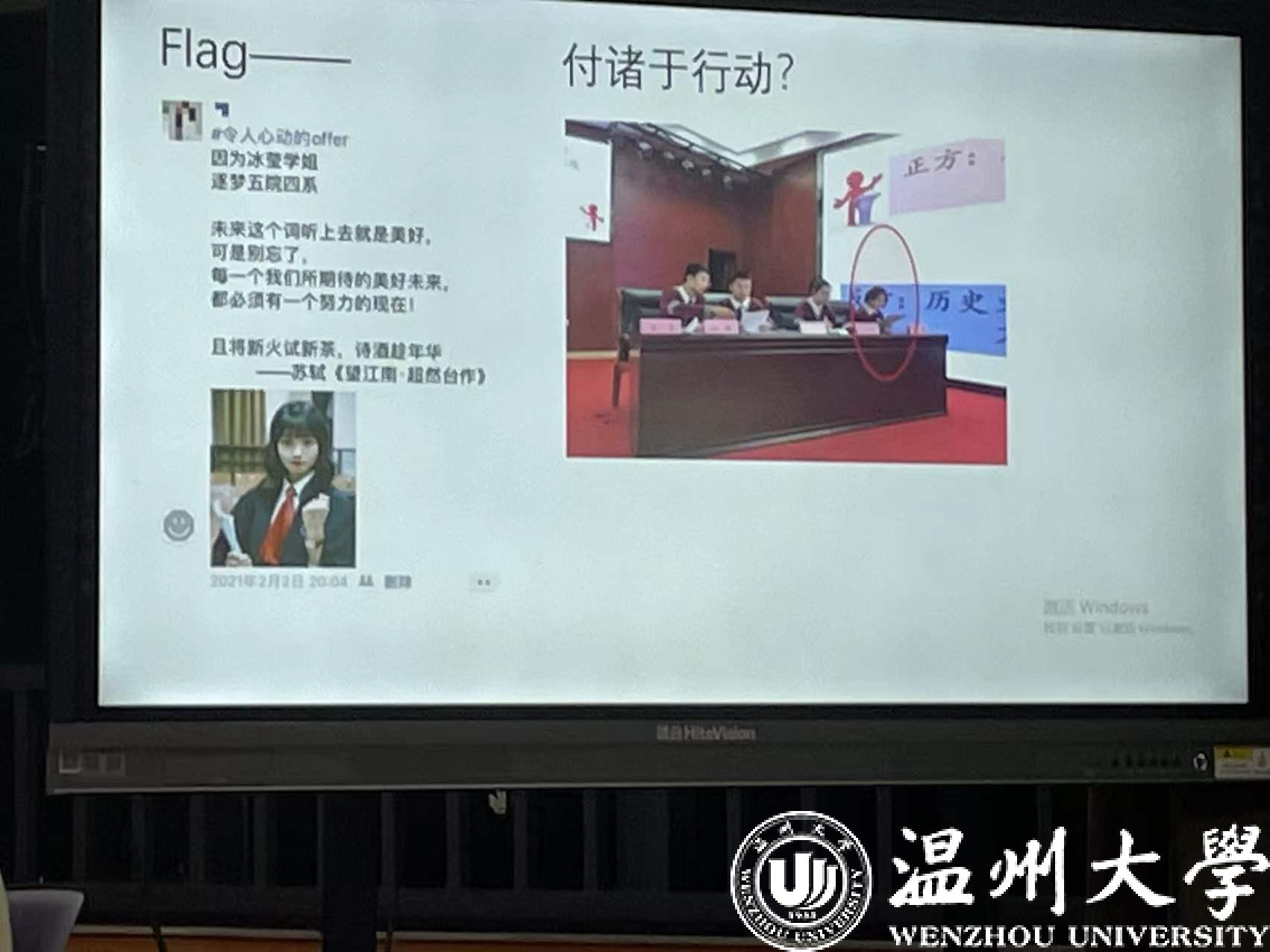 郑彩莲老师认为,躺平只是资源有限的条件下向社会目标前进遇到困难时的自我调侃,人要允许自己暂时的躺平与休息,但真正躺平的人是不会被社会的进步所接受。就此,郑彩莲老师为同学们的生涯规划提出了两点意见。一是“to be”。成为什么样的人,需要设立一个个小目标,一步步成为想要的样子。二是“to do”。去做一件件小事,从当下做起,是对于未来美好的当下奉献。