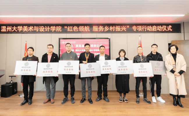 12月24日下午,温州大学美术与设计学院举行“红色领航 服务乡村振兴”专项行动启动仪式,并与文成周山、瓯海丽岙、洞头霓屿等首批八个单位握手党建、共建“美育基地”,正式吹响“红色领航 服务乡村振兴”的号角。