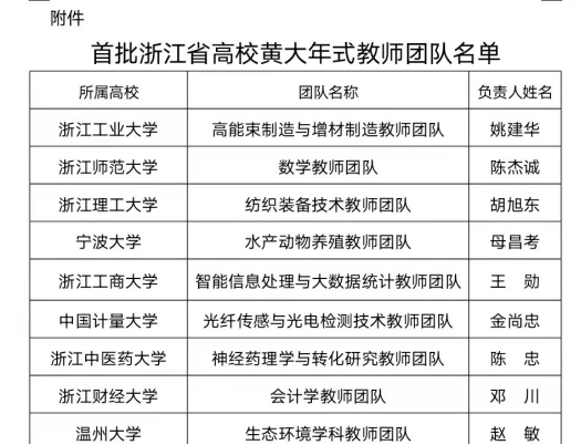 近日,首批浙江省高校黄大年式教师团队入选名单出炉,温州大学校长赵敏领衔的生态环境学科教师团队成功入选。