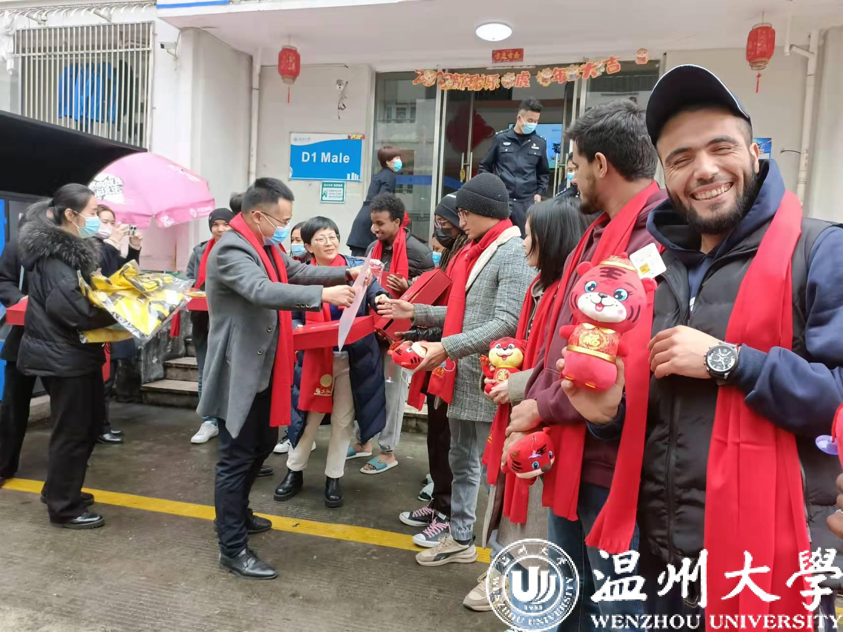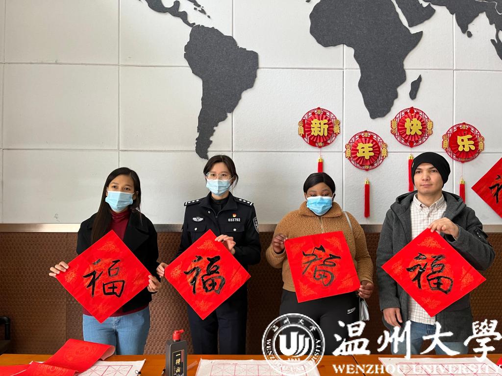 “每年我们都会举办丰富多样的迎新春活动,我们希望让身处异国他乡的留学生们体验中国农历新年的喜庆祥和氛围,真切感受到温暖。同时,帮助留学生更好的了解中国、读懂中国。”国际教育学院院长宋占美表示。温州大学党委副书记庄兴忠、市教育局、瓯海出入境管理大队、茶山派出所、中国银行温州分行、学校相关部门负责人一起参与了活动,并将充满中国味的新年祝福送到每一位留学生手上。