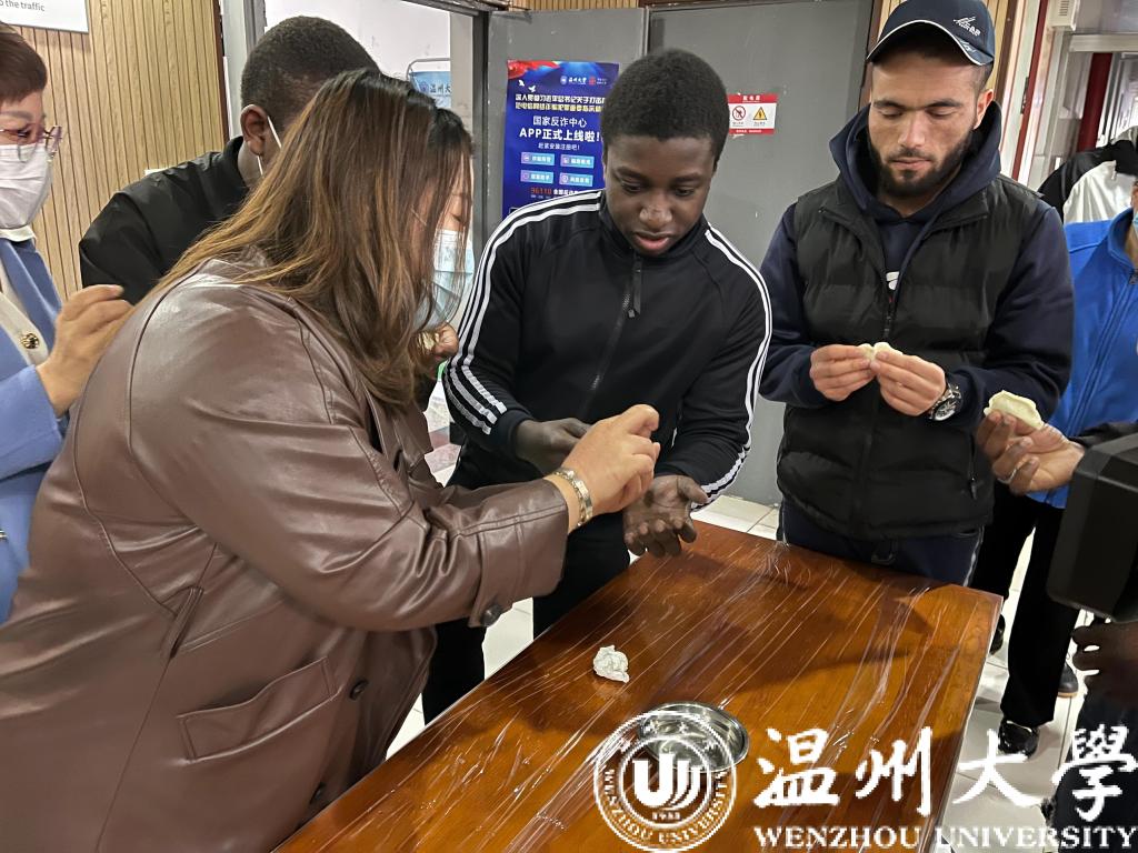 学包饺子,包住的是一整年的爱与幸福。外国留学生们包出形态各异的饺子,互相比对切磋谁包得最美最像,一起品尝着刚出锅的自己亲手学包的水饺。来自越南的陈氏玉映说,“这是他在中国过的第三个春节,虽然很想念亲人,但在温州大学过春节同样很温暖,老师们非常照顾我们,也很感谢中国政府给我们提供免费的疫苗,我们在中国学习生活很安心”。来自塔吉克斯坦的朱一龙表示,“中国的春节和我们国家的古尔邦节有很多相似的地方,过节的时候都会准备很多吃的,也会走亲访友。今年虽然无法回家,但老师同学们都在一起,我们寒假生活很丰富。”