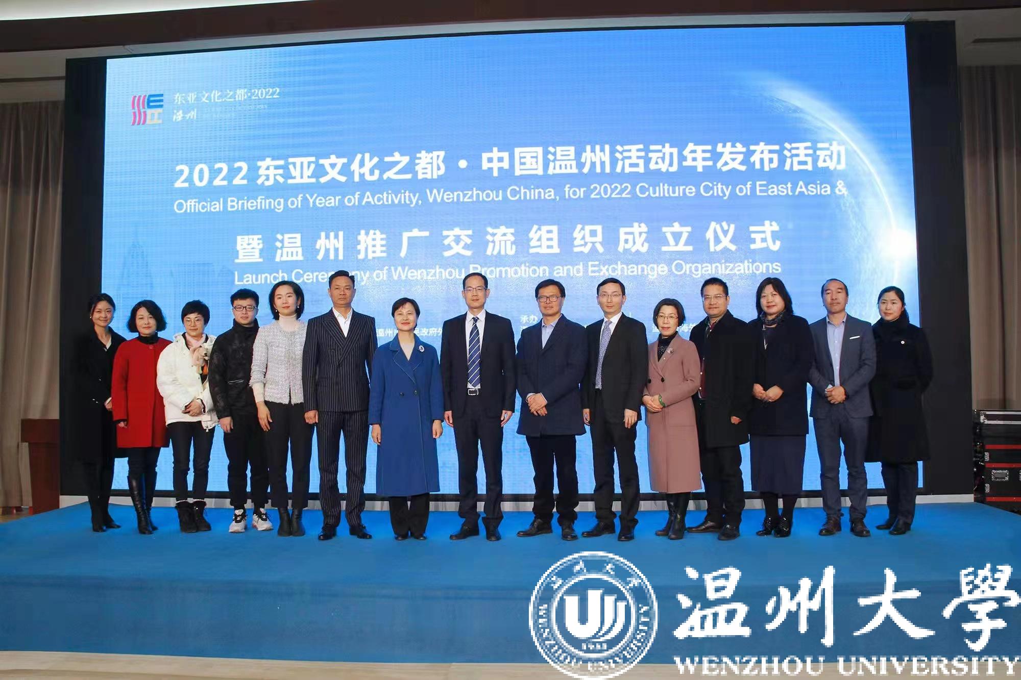 1月26日上午,“2022东亚文化之都·中国温州活动年”发布活动暨温州推广交流组织成立仪式在温州市海外传播中心举行,浙江省文化和旅游厅副厅长、党组成员、一级巡视员许澎,温州市人民政府副市长娄绍光出席,温州大学外国语学院院长叶苗、副院长杨红等参加活动。温州市人民政府副秘书长项光夫主持。
