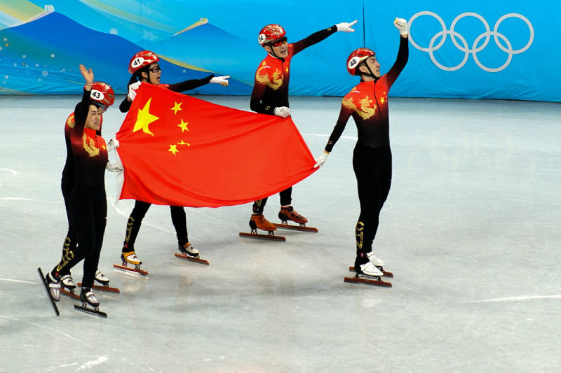 2022年冬奥会短道速滑项目混合团体接力决赛中:中国短道速滑队夺得冠军。图片来源:视觉中国