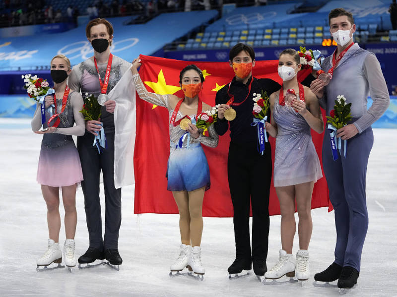 2022北京冬奥会花样滑冰双人滑,韩聪、隋文静夺冠。图片来源:视觉中国