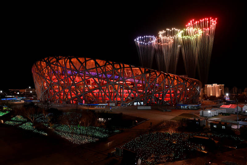 2022北京冬奥会闭幕,鸟巢上空焰火绚烂。图片来源:视觉中国