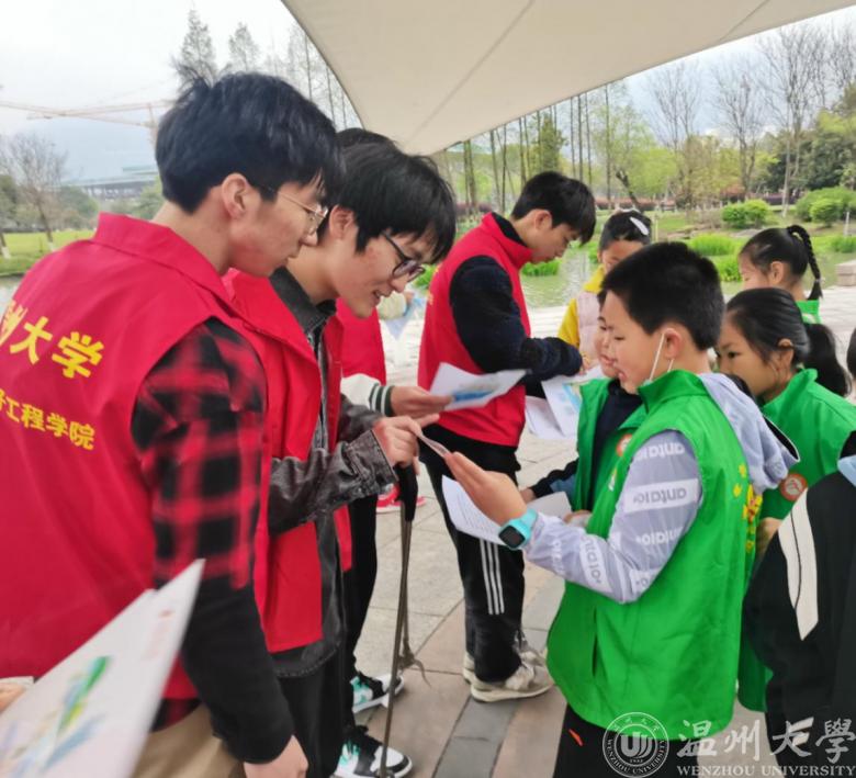 本次活动还邀请了温州大学的大学生志愿者同学来进行科普。河流观察活动开始前,大学生志愿者向到场的同学和家长们介绍了关于世界水日、中国水周的知识,还将河流的生态知识进行了科普。同学们非常认真的听讲并且不断的思考提问。知识讲解环节结束后,就开始了正式大手拉小手,一起做检测的环节。在大学生志愿者的指导下,温州大学城附属学校四六班的同学们迅速掌握了检测软件,并且他们分组来到河流旁边观察。河流是否清澈,河滩有没有垃圾,河水有没有自由流淌,河岸两边植被长势如何,有没有入侵的生物,同学们认真的为母亲河做了一次体检,还有同学用软件记录下来并向平台提交了发现的问题。观测结束后,同学们和大学生哥哥们还开展了净滩行动,他们认真的去寻找每个河滩边上能找到的垃圾和杂物,每寻找到一件垃圾,就像寻到“宝”一样。经过一个多小时的努力,同学们所在河滩周边已经非常干净了。参加本此活动的姜宸若同学表示,“这样的活动非常有意义,让我们了解了母亲河的健康状况,又懂得了保护生态环境的重要性,自己以后还会参加类似的活动。