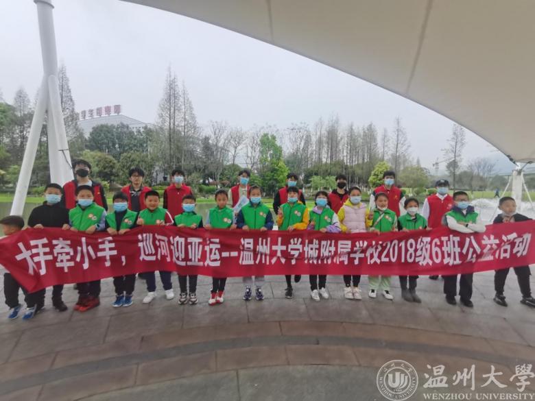 为响应省政府向全社会发出的“人人都是东道主,我为亚运做贡献”的号召,在3月22日世界水日、3月22-28日中国水周期间,温州大学城附属学校四六班的同学和家长40多人一同前往温州大学城附近温瑞塘河水域进行“大手牵小手,巡河迎亚运”的河流观察公益活动。