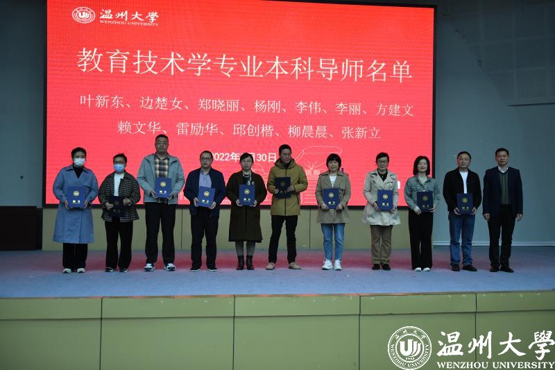 聘任仪式上,现场人员宣读了导师聘任决定,温州大学溯初书院领导班子为本科导师颁发聘书,学生代表为导师们送上鲜花。实施本科生导师制是温州大学溯初书院推动“三全育人”、培养德智体美劳全面发展的社会主义建设者和接班人的有益探索和实践,是实现“培养具有‘博爱雅艺’师范气质、突出教育教学技能和教育创新能力的未来卓越教师”人才培养目标的有力支撑和保障,是书院提高人才培养质量的重大务实举措。