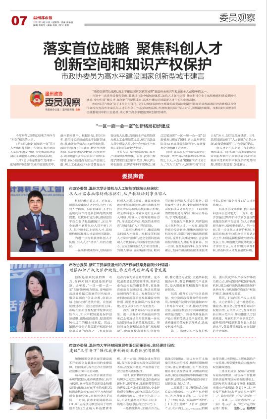 市政协委员、温州大学计算机与人工智能学院院长张笑钦:从人才需求画像到精准招引,从产教联培到事业留人