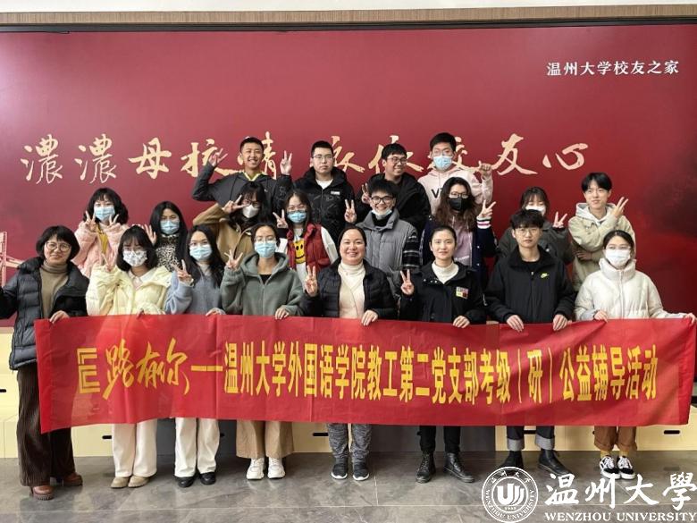 这支志愿服务队伍就是温州大学外国语学院“E路有你”学生考研考级英语公益辅导团队,由该学院教工第二党支部的党员教师和部分学生志愿者组建而成,立足校园,服务学生,开展考研考级公益助学活动。