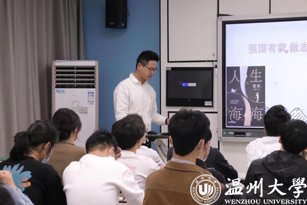 为深入学习贯彻党的十九大和十九届历次全会精神,全面贯彻落实习近平总书记对研究生教育工作的重要指示精神,4月20日下午,由温州大学机电工程学院研究生党支部与研究生会联合主办的以“青春献礼二十大,强国有我新征程”为主题的读书分享会在机电学院6B308举行。机电工程学院院长向家伟、党委书记周荣、党委副书记黄玮、辅导员郑妤以及2021级机电工程学院研究生出席本次悦读会。