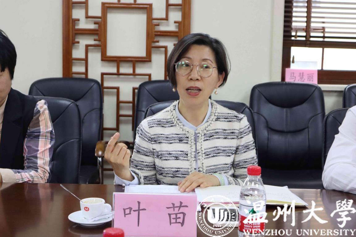 外国语学院院长叶苗简要介绍了温州大学与侨乡的天然联系,表达了与地方合作的意愿。叶院长表示在接下来的互通合作中,外国语学院将发挥专业特色为侨服务,着力推进侨文化相关研究与实践。