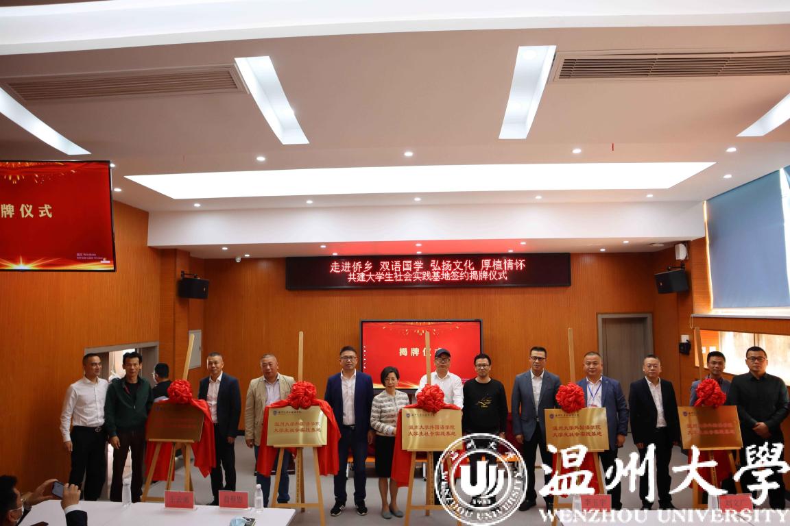 日前,温州大学外国语学院与瓯海区丽岙、仙岩、茶山三地的5所侨乡学校,揭牌共建大学生实践基地。据了解,该实践基地将充分发挥温州大学外国语学院专业优势,紧密对接地方需求,在服务侨乡发展、厚植侨民家国情怀的同时,为温大学子搭建良好实践平台。