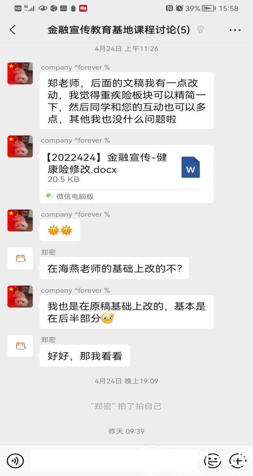 为让在校学生更好地学习金融教育知识,在制定完成全年课程计划后,招商银行温州分行与温大商学院就课程内容设置及展现形式开展线上会议讨论。在确定第一次金融课堂以保险知识为主题后,通过向温大商学院学生广泛收集意见,同时通过多次讨论修改课件内容,招商银行以以学生关注问题为导向,量身定做了课程内容及呈现方式。同时为了加大学生的参与感与提升学习效果,由温大商学院金融宣讲团的学生代表共同参与课程录制与课程视频制作,通过深入浅出的保险知识宣讲,提升学生的基础金融知识。