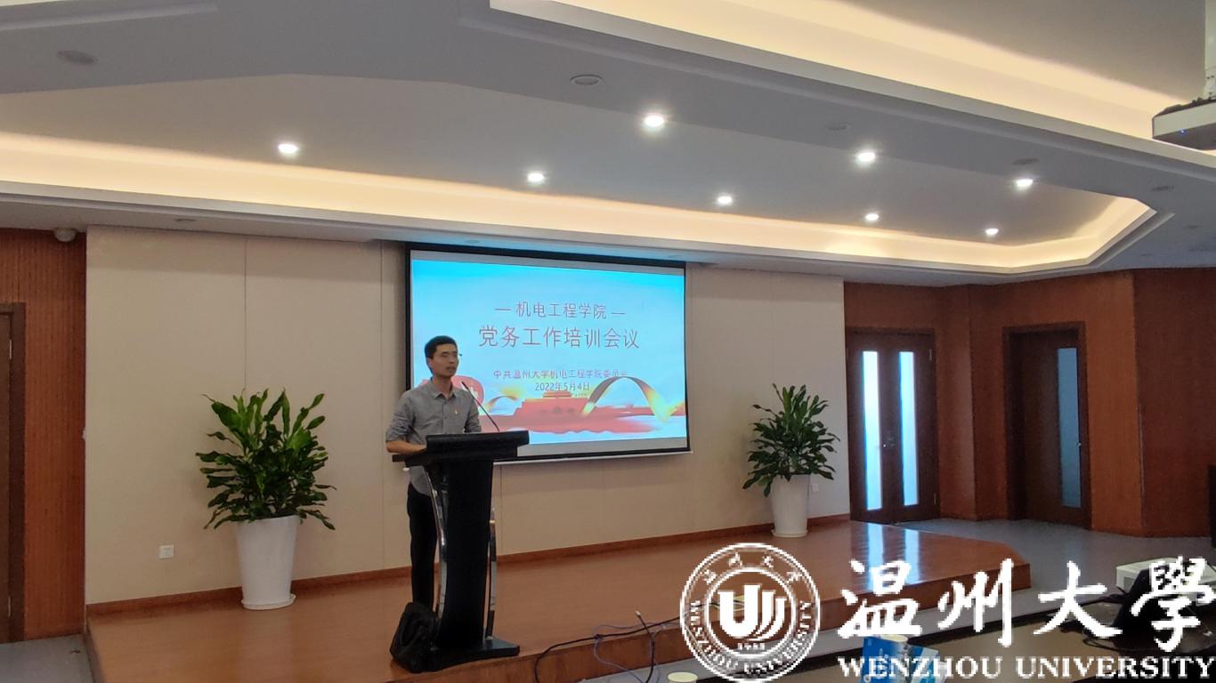 5月4日,温州大学机电学院党务工作培训会议在6B309顺利召开,学院党委副书记黄玮老师、组织员方乐平老师、党建指导老师及各支部书记、委员三十余人参会。