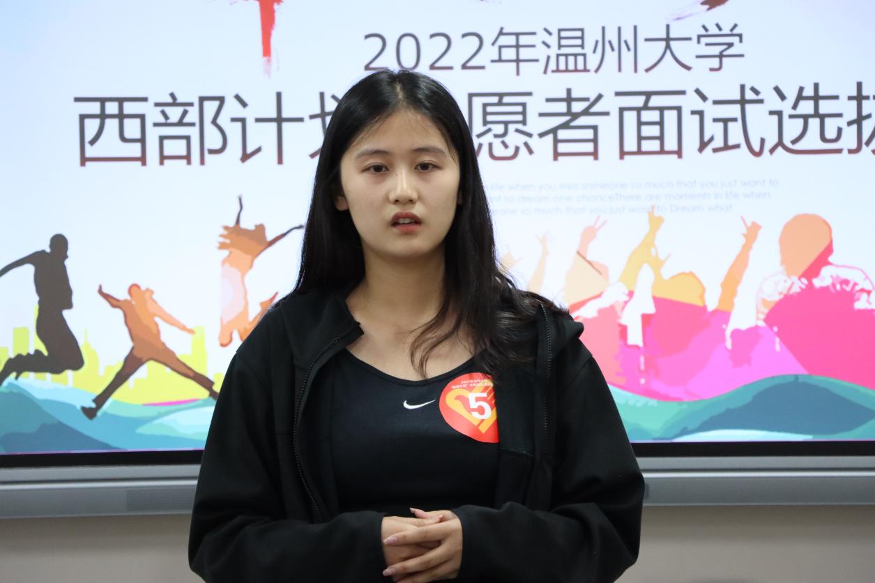 5月15日,2022年温州大学“西部计划”志愿者面试选拔活动在南校区9B-109顺利开展,为确保疫情防控期间面试的全面覆盖,本次面试采取线下为主、线上面试为辅的方式进行。校团委、校招生就业处等相关负责人担任评委。