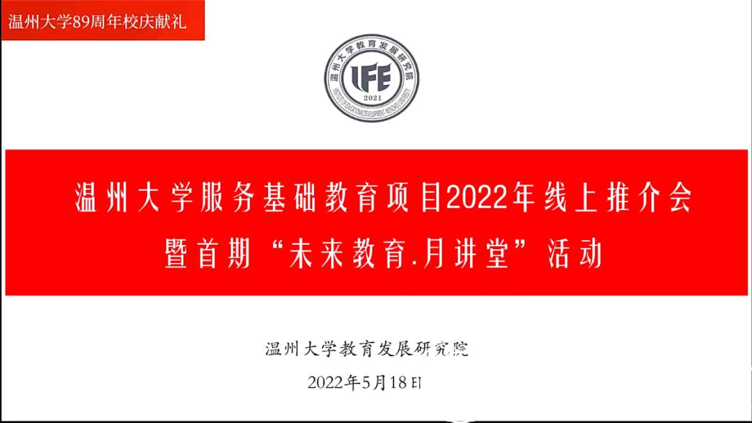 5月18日,温州大学服务基础教育项目 2022 年线上推介会暨“未来教育.月讲堂”顺利开讲。