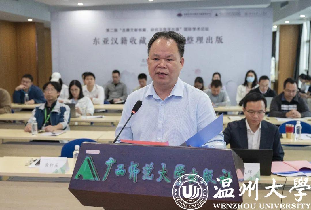 会议由北京大学中国古文献研究中心、广西师范大学出版社集团有限公司主办,温州大学人文学院协办,开幕式由广西师范大学出版社集团有限公司总编辑汤文辉编审主持,全国古籍整理出版规划领导小组副组长、全国高校古委会名誉主任、北京大学中国古文献研究中心安平秋教授,广西师范大学出版社集团有限公司董事长黄轩庄教授,温州大学人文学院副院长陈源源教授先后致辞。