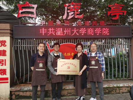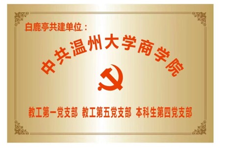 每一块奖牌,都代表着一种情怀。白鹿亭发展建设陈列墙上,就摆放着一块特殊的奖牌:“中共温州大学商学院”——教工第一党支部、教工第五党支部、本科生第四党支部。