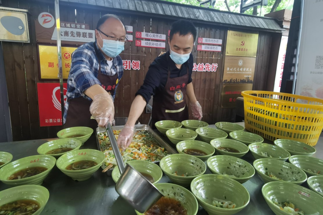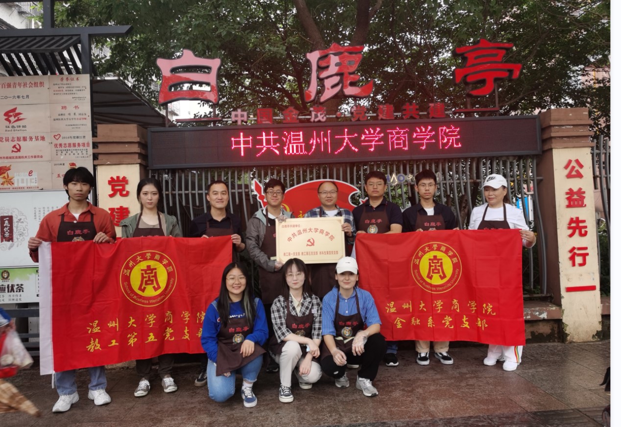 2022年5月26日早上6点40分,温州大学商学院教工第五党支部联合教工第一党支部、本科生第四党支部,组织党员同志来到白鹿亭开展主题党日活动——白鹿亭公益早餐行,公益岗位由慈善联合会会长邵智敏统筹安排。