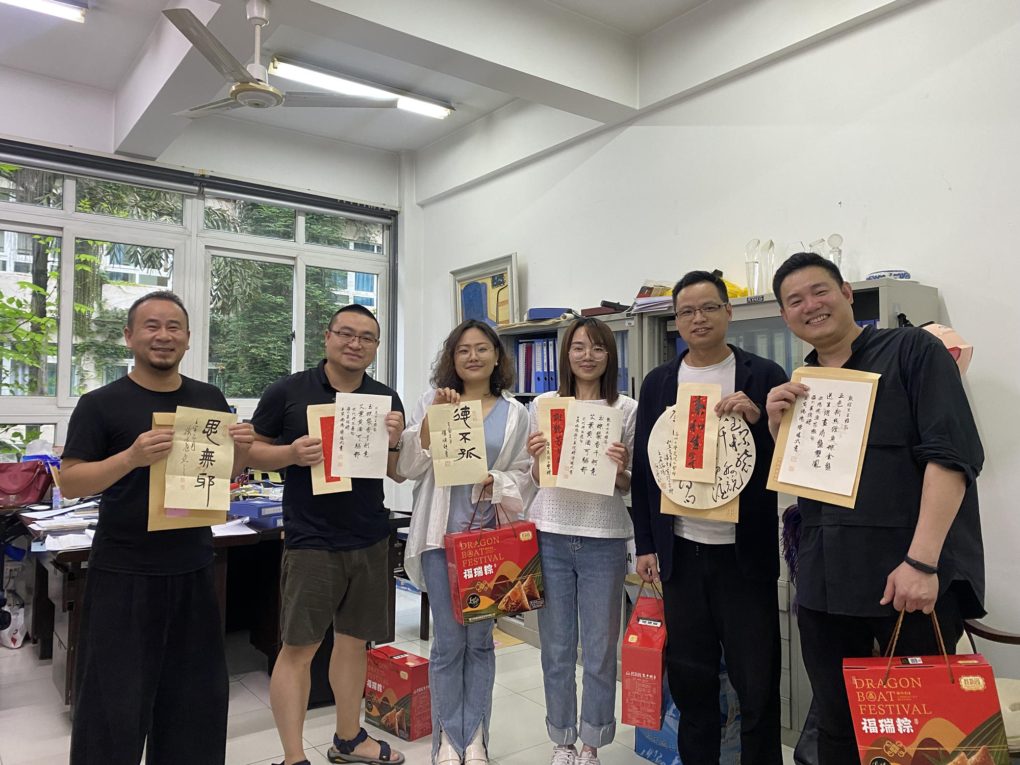 六月端午祥,丹青墨飘香。端午佳节来临之际,温州大学美术与设计学院的办公室和走廊充满欢声笑语,原来是老师们在拆“盲盒”:吉语书签、草书团扇、诗词信札......今年的端午节,除了粽子,老师们还收到了一份充满文化自信、民族精神和创意惊喜的端午赠礼。