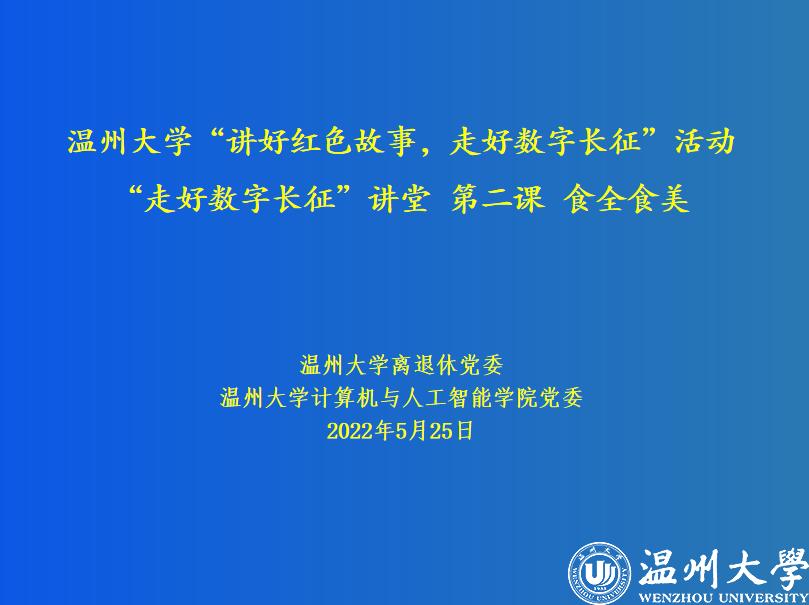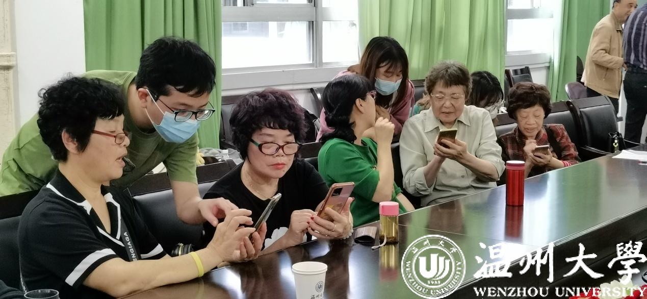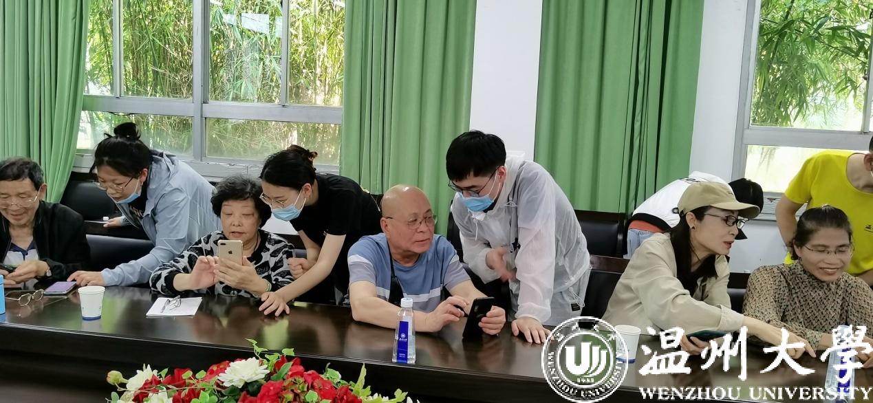 2022年5月25日下午,温州大学离退休党委和温州大学计算机与人工智能学院党委联合开展的“走好数字长征”讲堂第二课暨“惠生惠师工程”之“银龄跨越数字鸿沟”项目第一期,在温州大学学院路校区老干部活动中心会议室开讲。20位退休老师积极参与,携手15位大学生党员志愿者共同开启一场“数字之旅”。