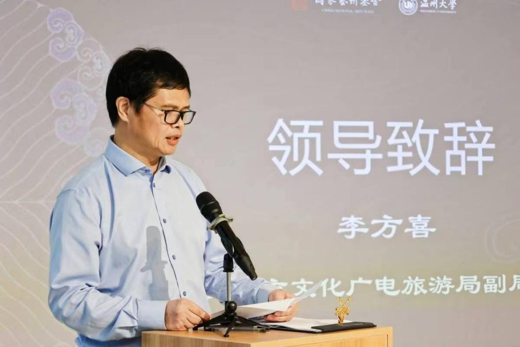徐和昆副校长致辞。温州大学是浙南闽北赣东区域唯一的综合性教学研究型大学,艺术教育底蕴深厚,实力突出,本次展览在国家艺术基金项目的大力资助下,必将进一步推进温州非遗人才培养,促进浙江工艺美术薪火相传,为中国刺绣艺术事业发展作出更大的贡献。
